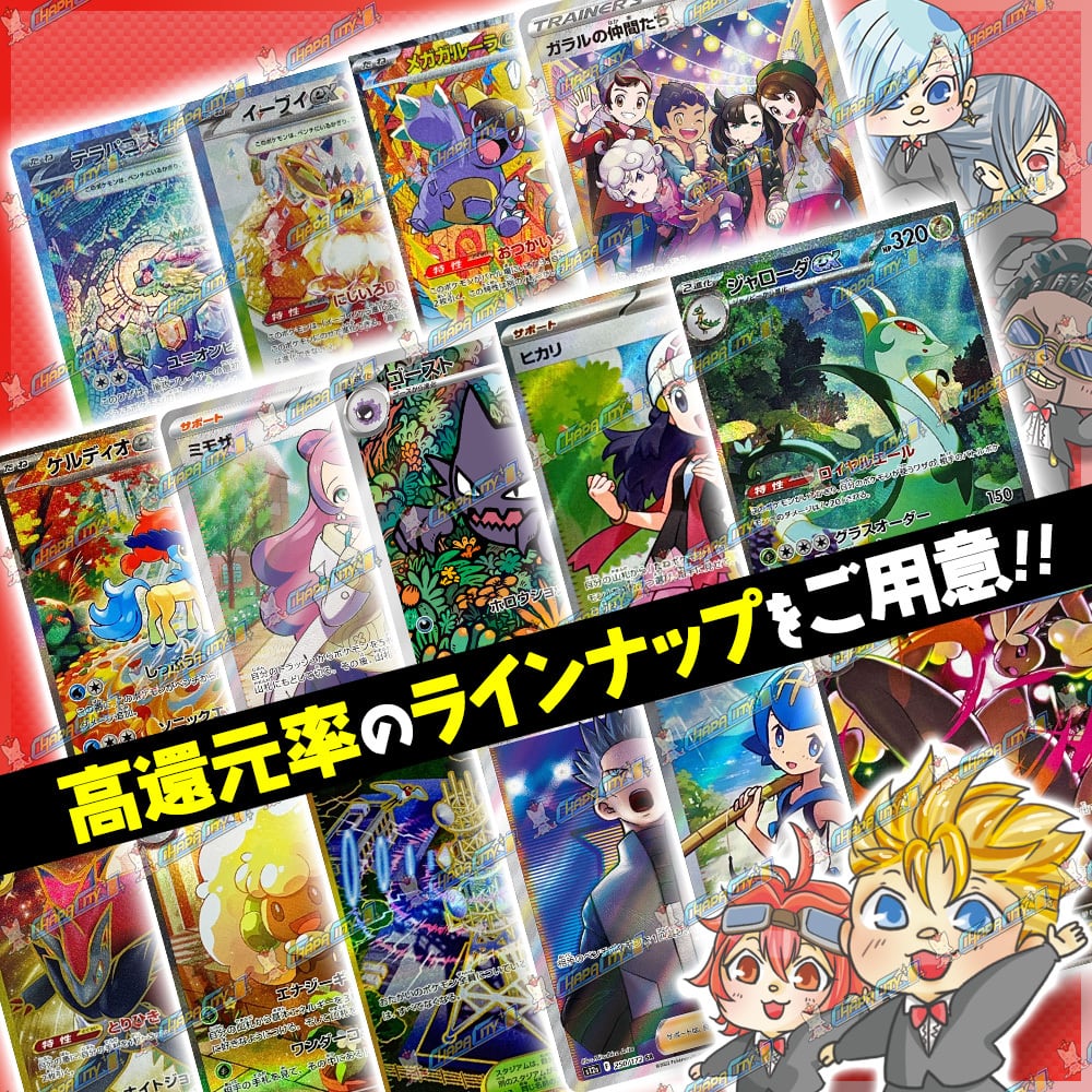 ランダムで選びますので必ずしもお望みのカードが手に入る訳ではございません、ご了承ください。